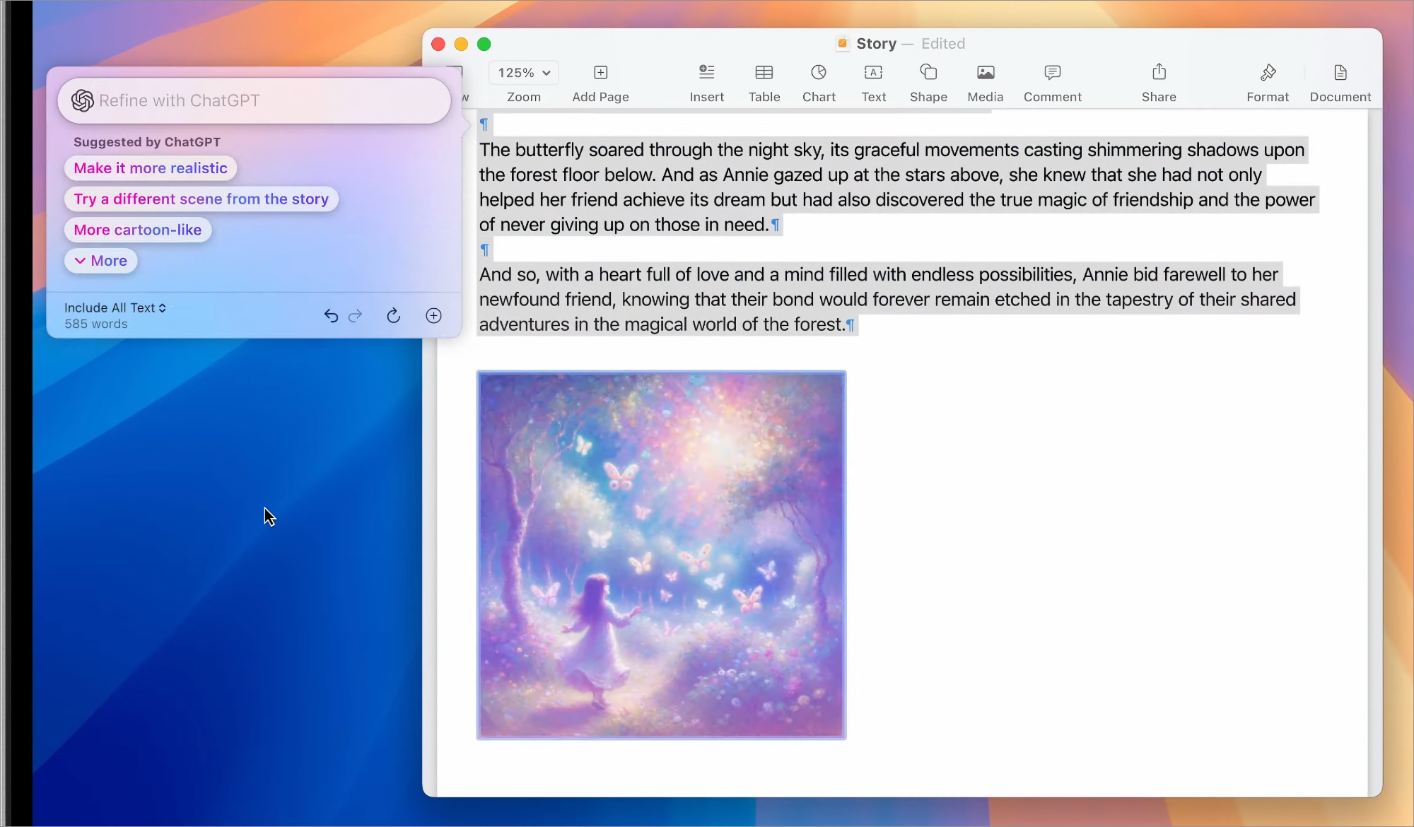 Az új Image Playground segítségével teljesen új, egyedi stílusú és szórakoztató képet hozhat létre egy ötlet, fénykép vagy skicc alapján, amely az Üzenetek, a Jegyzetek, a Freeform, a Pages, a Keynote és külső alkalmazások funkcióiban is elérhető. Emellett az új Image Playground alkalmazással szabadon kísérletezhet képek létrehozásával.
