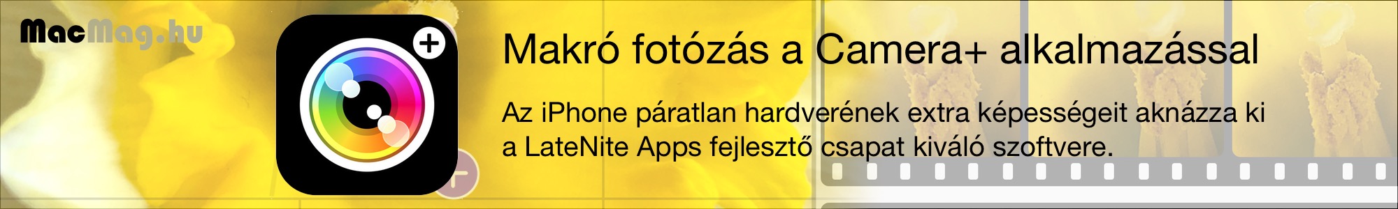 A Camera+ alkalmazás nyitó felületén a makró klasszikus szimbóluma látható: a kicsiny virág. A makró fényképezéshez az szükséges, hogy az optika képes legyen nagyon közelre fókuszálni. A makró felvételek ugyanis kis közelségből készülnek, ennek köszönhető a nagy részletesség a végeredményen. Az iOS Camera / Kamera alkalmazás nem teszi lehetővé, hogy az iPhone ilyen nagy közelségre fókuszáljon, vagyis távolabb kell mennünk, amivel egyrészt csökken a részletgazdagság, másrészt pedig olyan mellékes elemek is bekerülnek a képbe, amelyek amúgy nem tartoznak hozzá a témához.