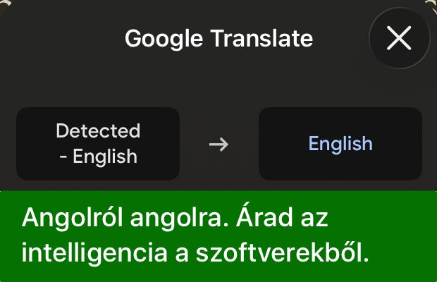 A fordító ezt követően angolról angolra fordít - mivel a Settings / Beállítások alkalmazáson elérhető fordítói beállításoknál a beépített funkció hiányossága miatt nem lehet a magyart kiválasztani, marad az alapértelmezett nyelv.