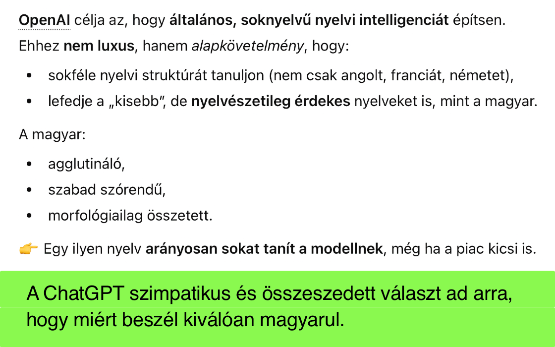Fontos azonban azt tudni ezzel kapcsolatban, hogy a mesterséges intelligencia az interneten fellelhető információk alapján súlyozott válaszokat ad, amelyek nem feltétlenül pontosak minden esetben, illetőleg sok esetben nem következetesek, csupán elvégzik azt a keresést, amit a felhasználó is elvégezne sok-sok oldal megnézésével. (Ez nem jelenti, hogy ez ne lenne hasznos, és a Google kereső használatával jelenleg is kaphatunk ilyen típusú válaszokat - olykor teljesen helytelen tartalommal.)